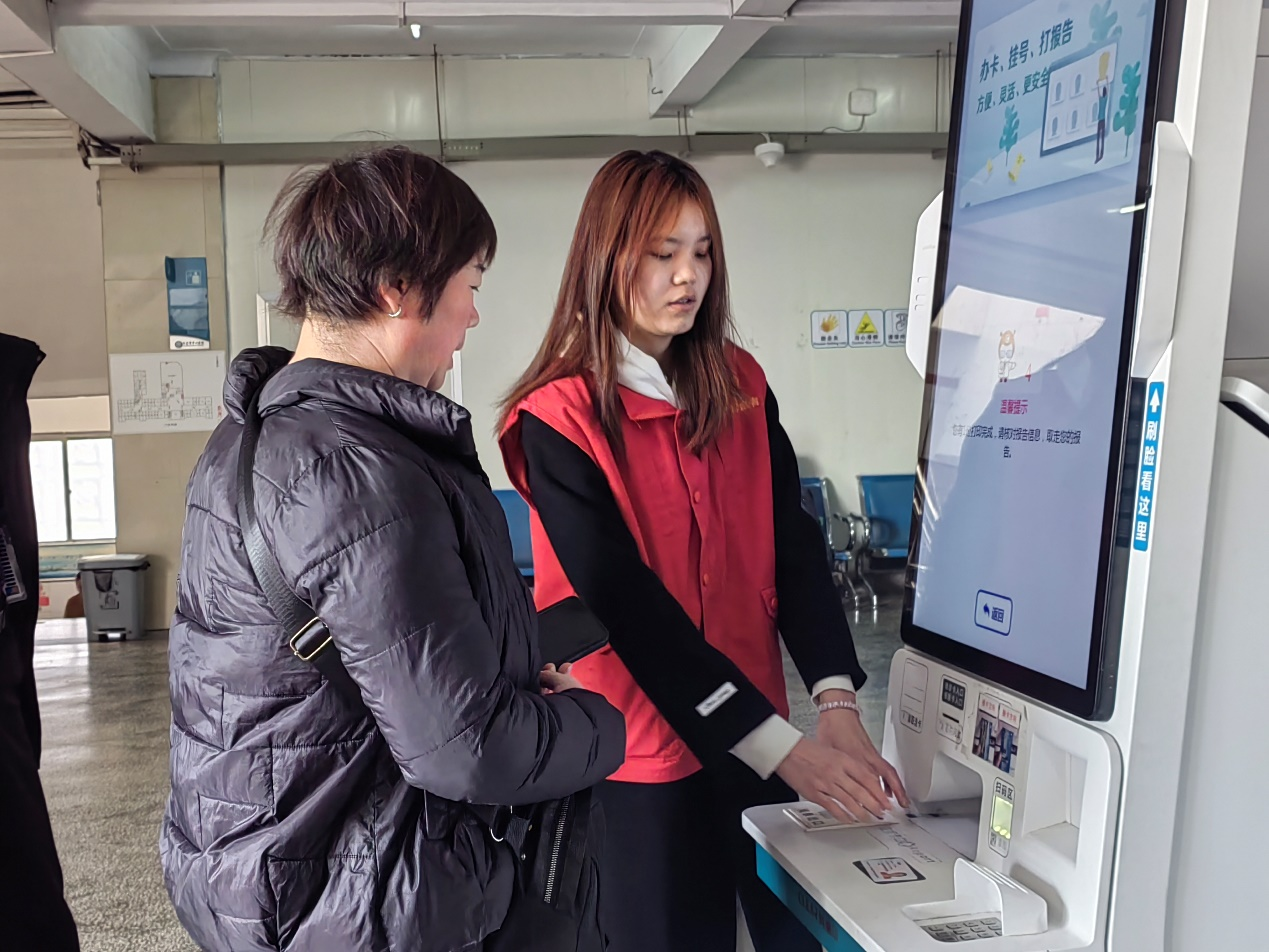 活动当天,志愿者们提前学习了解自助服务机的操作流程和医院各区域功能分布。在志愿服务过程中,他们耐心地为患者及家属提供自助服务机使用指导,解答疑问,提供指引和帮助,展现了美术与设计学院学生的专业素养和良好风貌。