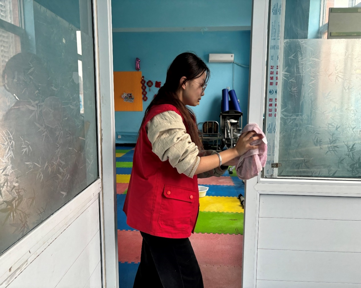 活动中,志愿者们与小朋友们开展游戏互动,如拼积木、搭乐高、跳格子等,让孩子们在游戏中得到锻炼和快乐。随后,志愿者们在工作人员的带领下,不仅认真打扫了孩子们活动的教室,还对窗户、地面、桌面进行了清洁打扫,为孩子们营造了一个干净整洁的环境。此次志愿活动,不仅为孩子们带去了欢乐,更在他们心中播下了爱与希望的种子。