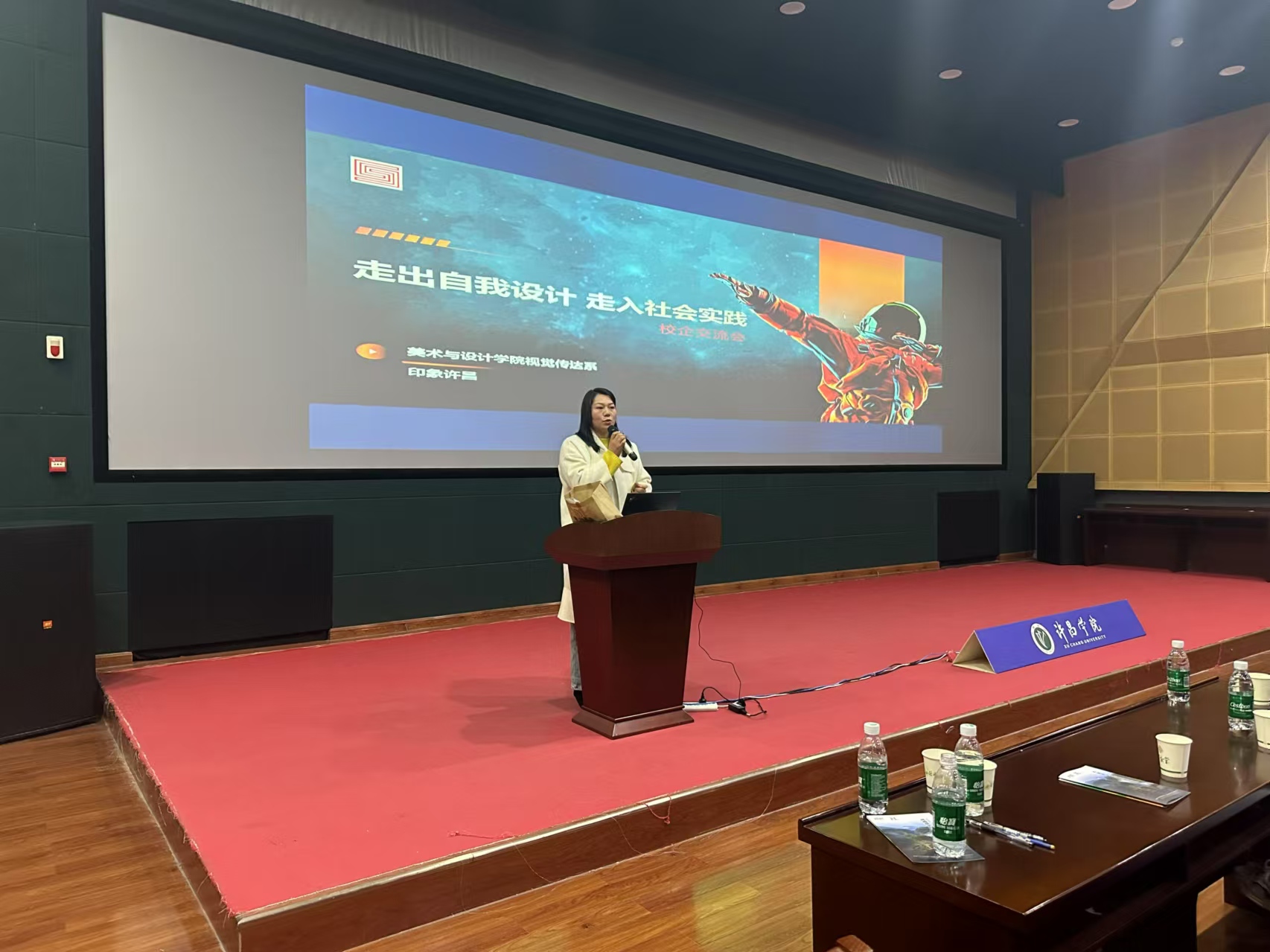 何燕副主任在交流会上致辞。代表我院对参会企业单位的嘉宾和师生表示热烈欢迎和诚挚感谢,并指出通过与企业的紧密合作,为学生搭建更真实、更前沿的实践平台,让学生在学习过程中无缝对接市场需求,提升专业技能与职业素养,同时也为企业输送高质量的应用型设计人才,实现双方的互利共赢目标。