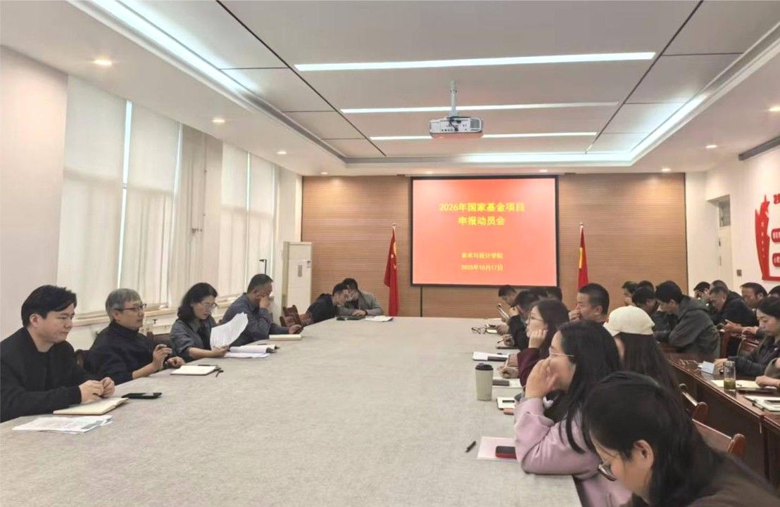 10月17日下午,我院在艺术楼三楼会议室召开有组织科研工作会议---2026年度国家基金项目申报动员会。美术与设计学院领导班子及全体教职工参加会议,会议由党委书记闫爱敏主持。