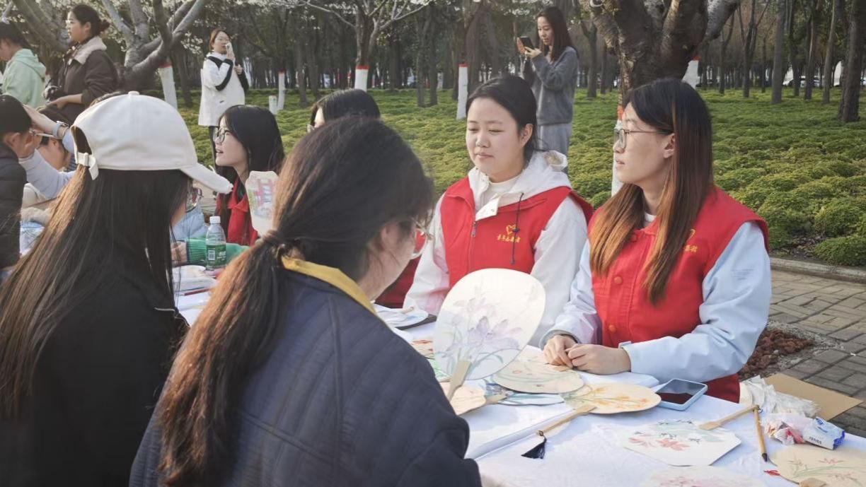 3月20日,美术与设计学院“春日花潮”DIY创意市集活动如期举行,粉白交织的花海吸引了众多市民前来打卡留念。为保障活动有序开展,志愿者们提前抵达现场,在人流密集区域设立服务岗,为参与者提供DIY制作指导、现场秩序维护及文明赏花劝导等服务。他们身着统一志愿服装,穿梭于花海与人群之间,耐心解答各类疑问,悉心帮助老人与孩童,以微笑与热忱守护着这场春日盛宴,让文明赏花的理念深入每一位参与者心中。