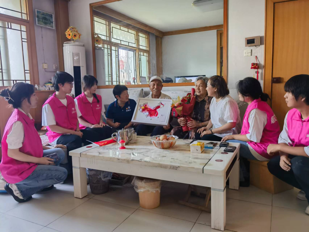 实践队成员还为退伍老党员薛焕成夫妇送上“我爱你,中国”纸雕作品,以及为退休老党员董爱玲老奶奶送上“喜迎七一”立体书作品。他们激动的表达着感激之情,对大学生志愿者给予了高度的肯定和赞扬。