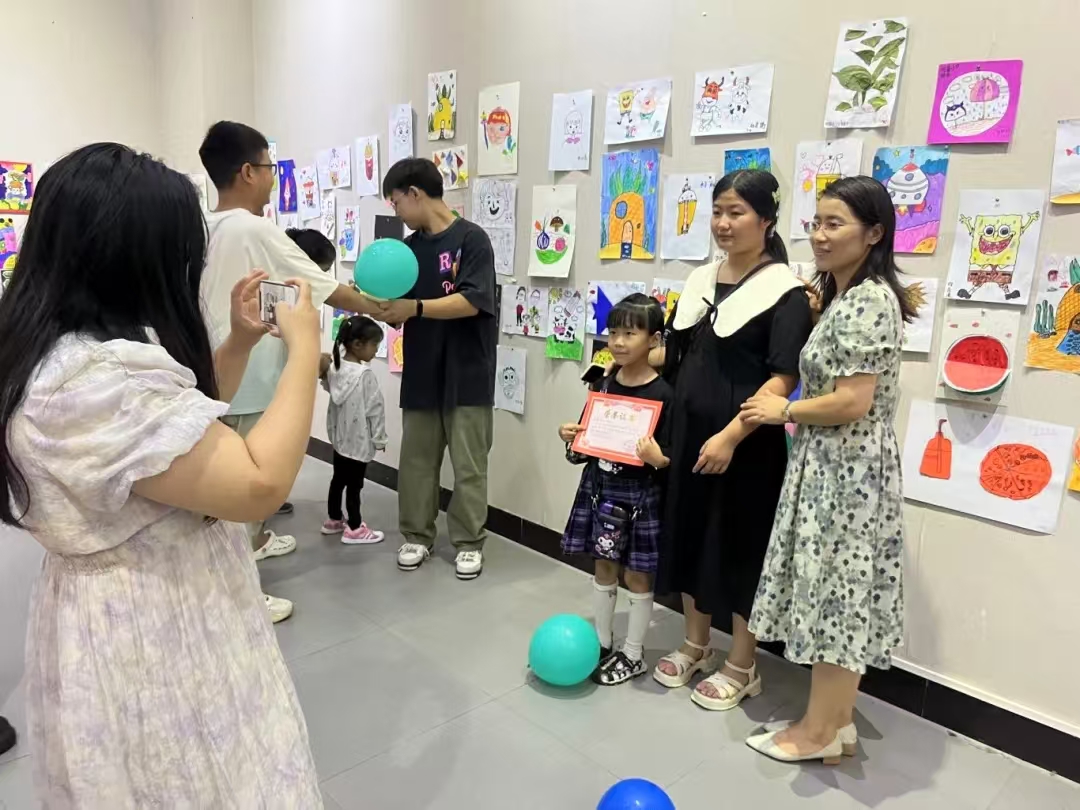 展览现场,一幅幅色彩斑斓、想象力爆棚的作品挂满了展厅,它们不仅是小朋友们辛勤创作的结晶,更是对未来美好世界无限憧憬的表达。从梦幻的星空到神秘的海洋,从有趣的动物乐园到温馨的家园景象,一笔一划都展现着孩子们纯真的心灵与无限的创意。活动结束后,队员们为小朋友们颁发了“优秀小画家”荣誉证书,这不仅是对他们绘画才能的认可,更是对他们不懈努力的肯定与鼓励。