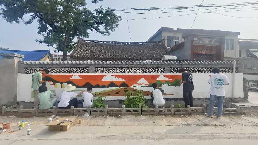 7月3日,是“石榴同心乡村行 青春描绘振兴梦”赴袁庄暑期社会实践队进行墙绘的第六天,实践队员们的墙绘工作有条不紊地进行着。
