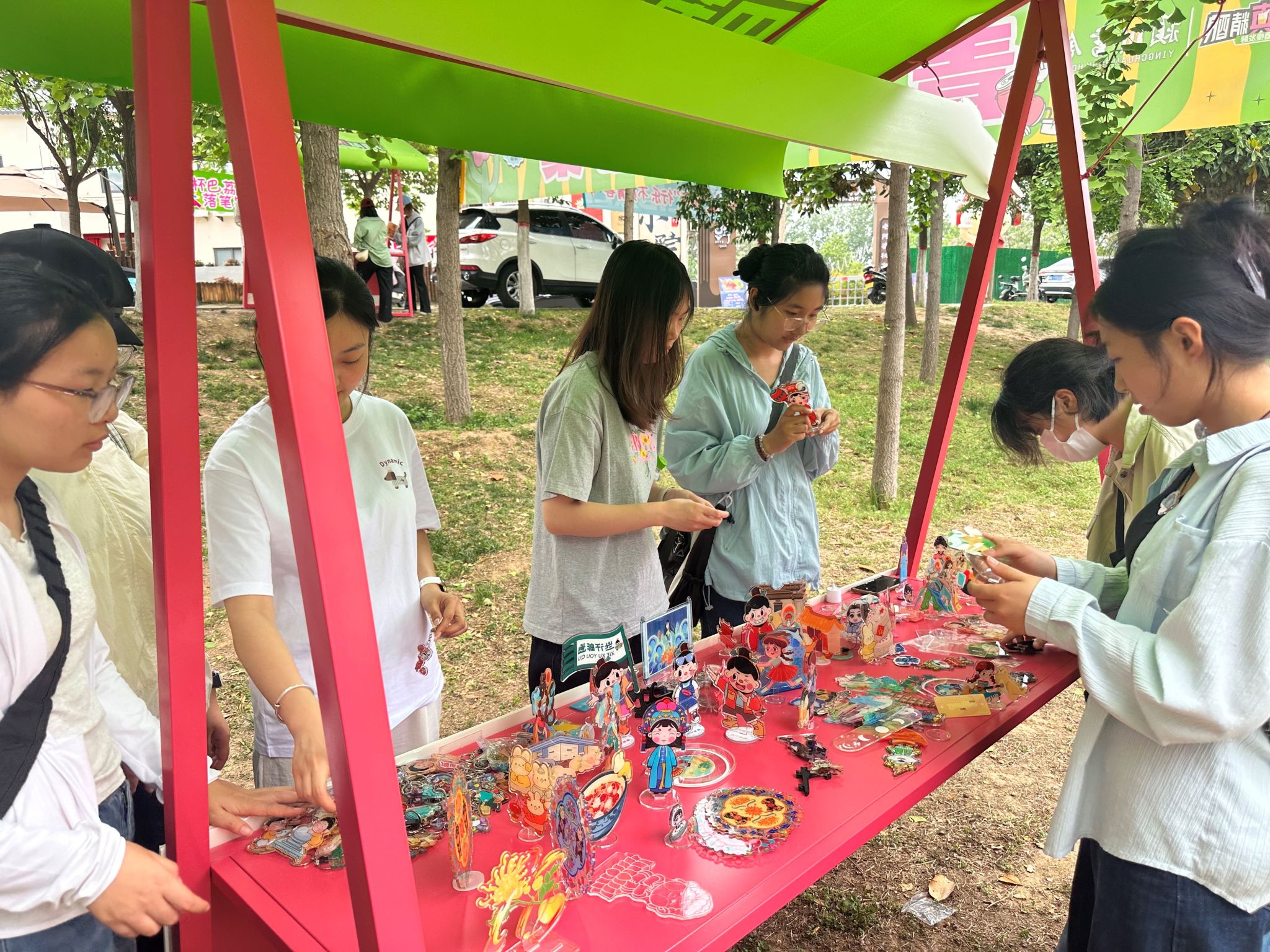 2025年4月26日至27日,“青年大学生美好市集”主题活动在魏都区百花北路王允的巷子(颍川书舍门口)热闹举办。许昌学院视觉传达设计系副主任何燕老师带领学生代表,携 100 余件文旅文创作品积极参与其中。