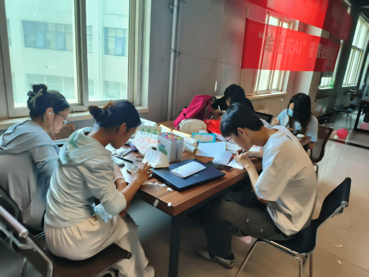 6月27日,绘莲成“AI”实践队开始进行教室布置与名字卡片导向牌制作活动。