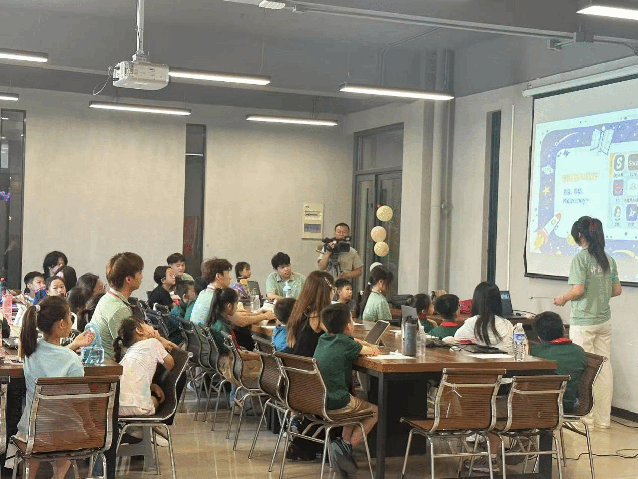 7月3日,绘莲成“AI”实践队的队员们以宇宙探险船为主题,展开了充满活力的实践活动。现场气氛热烈,不仅有古槐街小学的小朋友们参与,更吸引到社会媒体前来采访记录。
