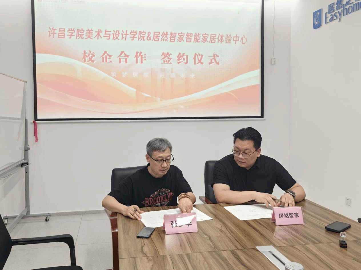 学院与企业在专业课程体系设计与教学实践等方面达成共识。许昌市广告传媒业商会提出增设数字化营销、新媒体视觉设计等实务课程;居然智家智能家居体验中心建议将智能家居交互设计、用户体验研究纳入艺术与科技专业核心课程,以匹配行业技术升级需求。校企双方计划联合开发“企业命题、真题实做”的实践项目,推动教学与产业需求无缝衔接。另外,我院与许昌居然智家智能家居体验中心联合打造文创及家居产品研发平台,推动学生作品市场化;同时在许昌企业设立人才实践基地,实现顶岗实习与优先录用一体化;基于企业反馈,强化设计专业的数字技术模块,增设AI辅助设计、虚拟空间构建等前沿课程。