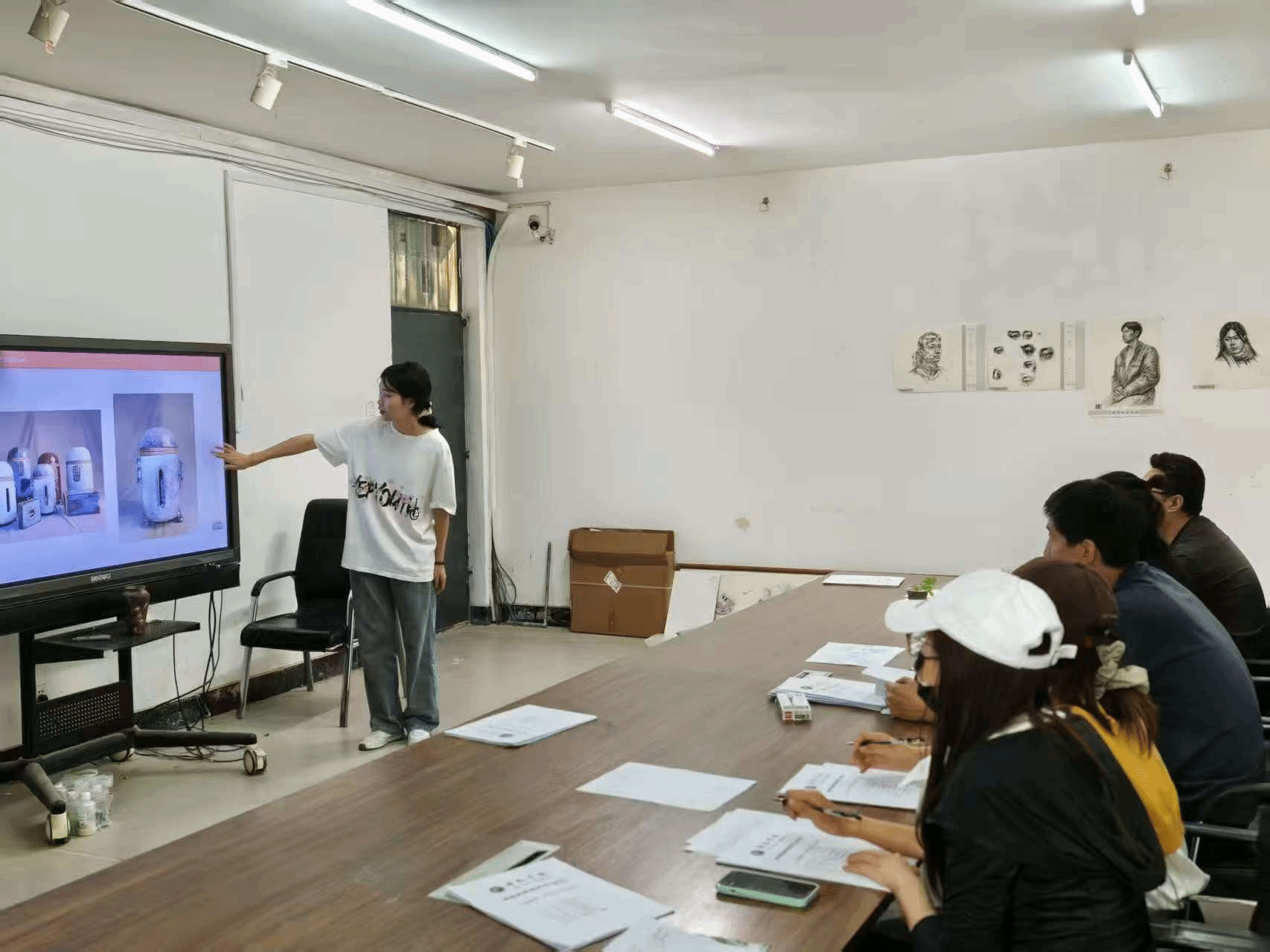 本届毕业生作品紧密贴合区域经济发展与行业趋势,涵盖中国画、油画创作、非遗数字化传承、文化创意产品、品牌包装、艺术交互等新兴领域。答辩过程中,美术学融入师范认证说课环节,紧贴教育教学革新动态;设计学以企业代表从技术迭代、用户体验及商业模式等维度提出针对性建议,为学生打通从“课堂创作”到“市场应用”的无缝衔接。